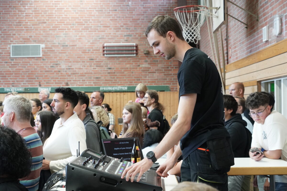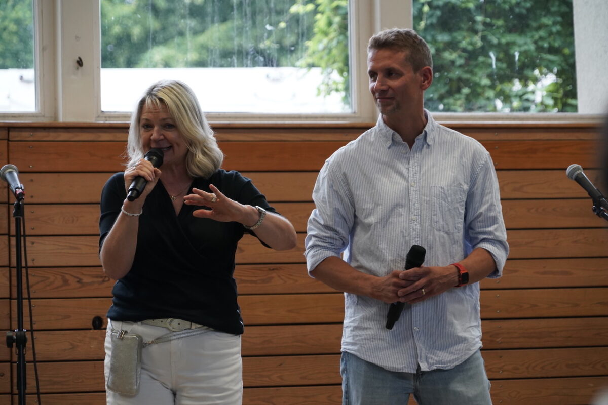 Die Schulleitung begrüßt die Bersucherinnen und Besucher und eröffnet das Sommerfest