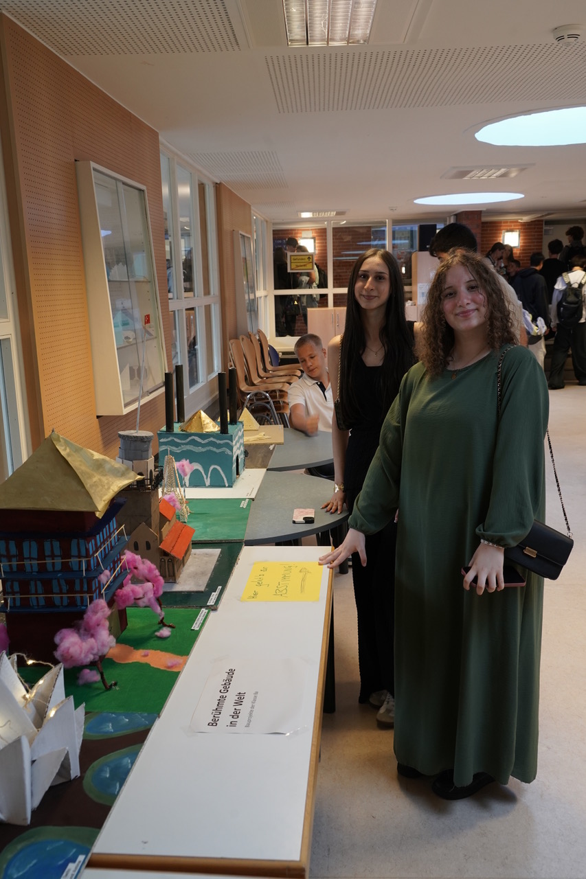 Die Klasse 8a stellt ihre Modelle der "Berühmten Gebäude in der Welt" aus