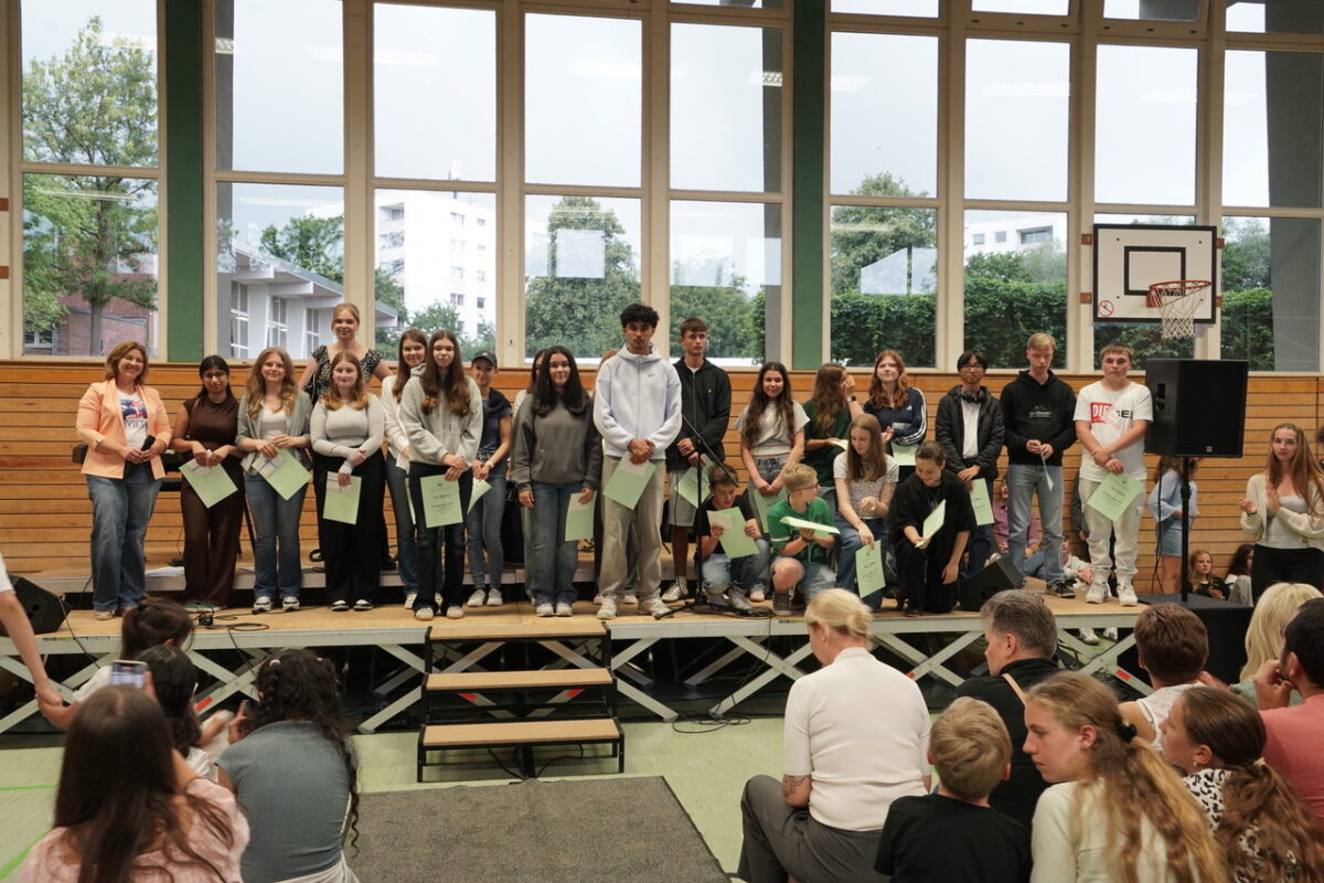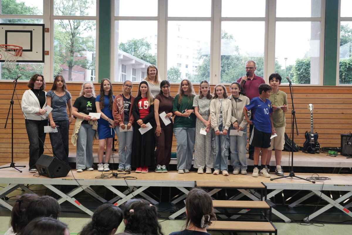 Die mit dem "Kleinen Alex" für besondere Verdienste für die Schulgemeinschaft augezeichneten Schülerinnen und Schüler